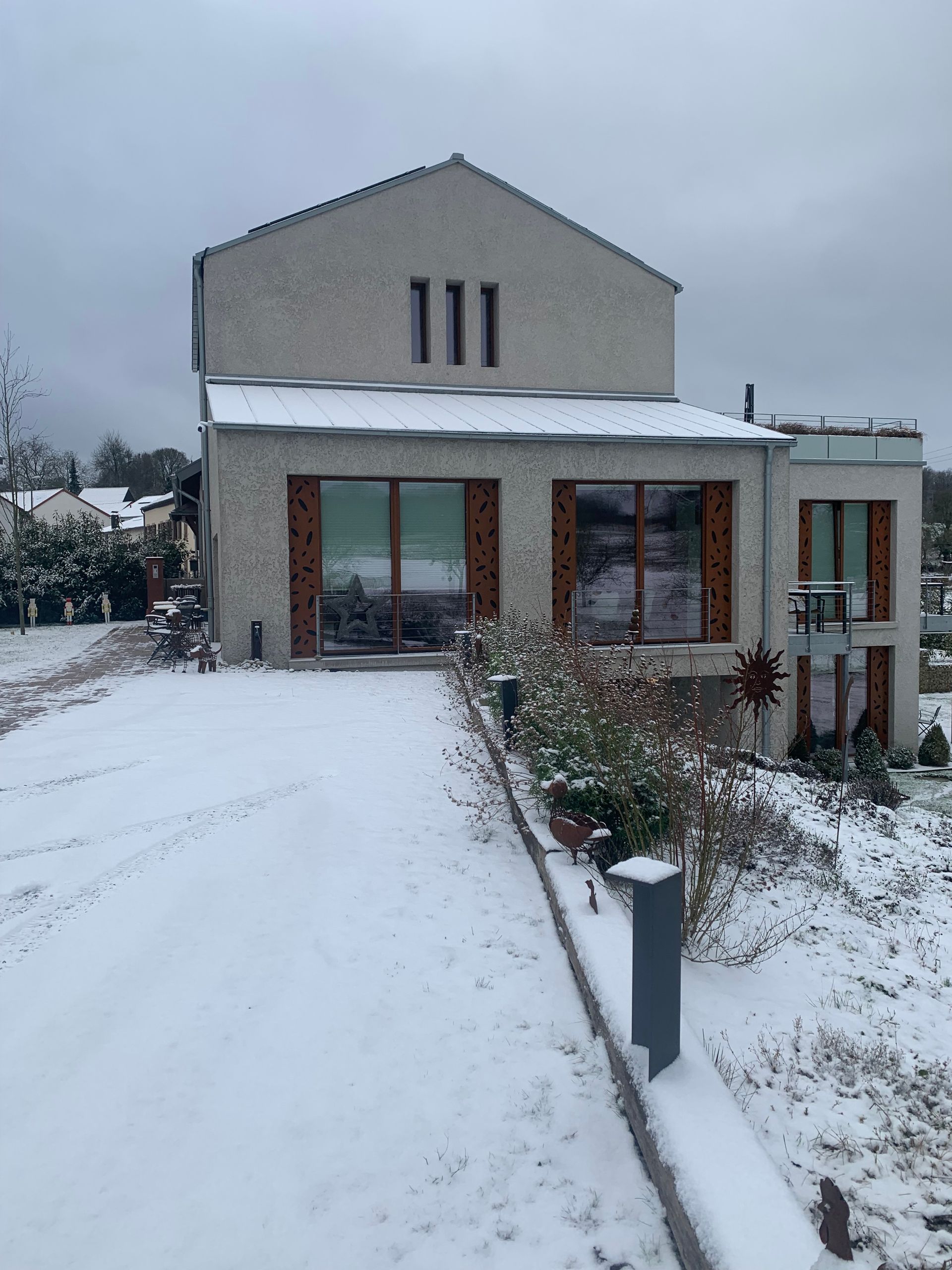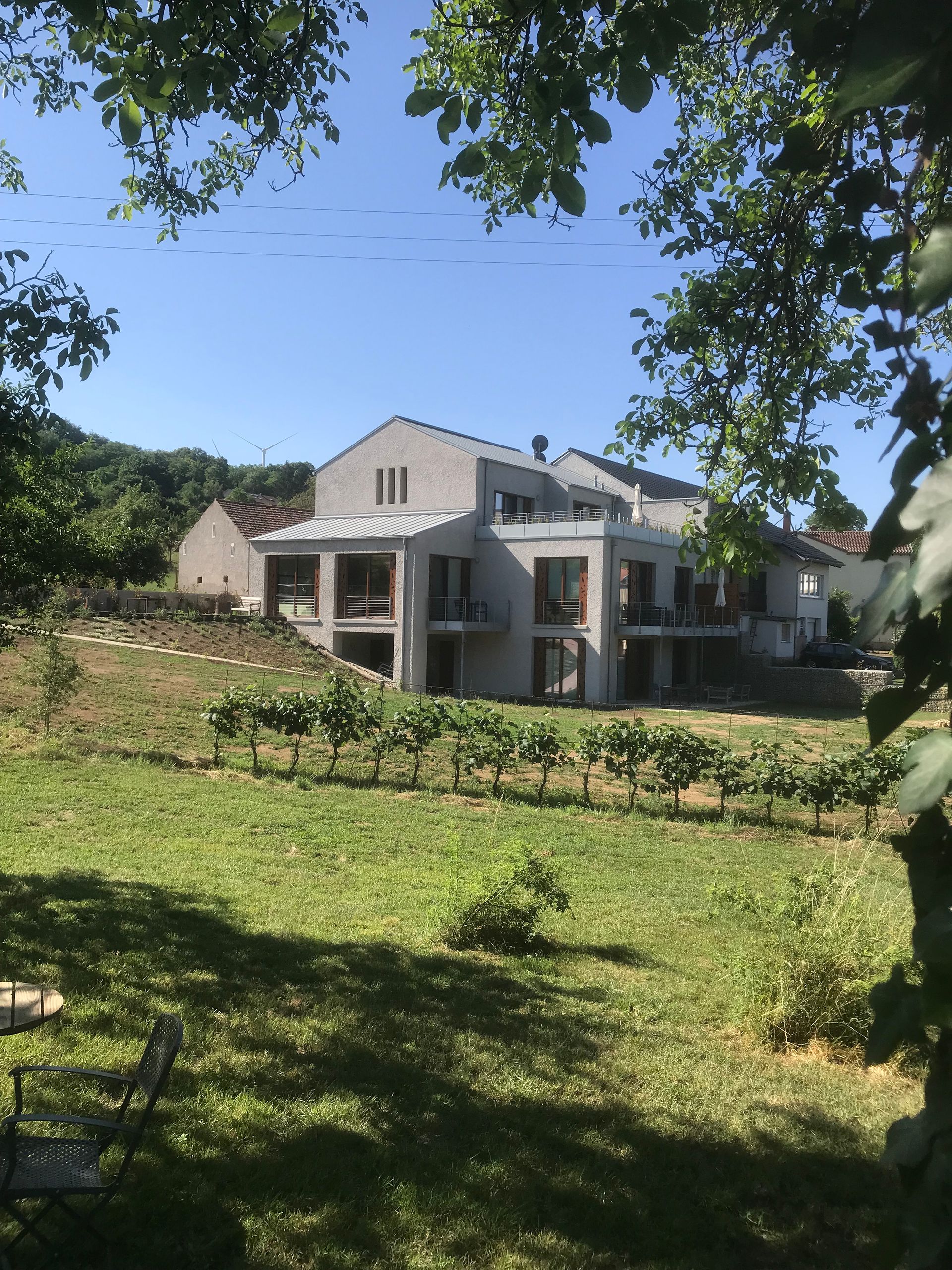 Die "Scheier" bedeutet übersetzt Scheune. Das Gebäude wurde vor über 120 Jahren gebaut und war bis bis in die 1970 Jahren Bestandteil eines Bauerhofes. Nach langem Leerstand haben wir uns entschlossen das Gebäude zu sanieren. Ein international bekanntes Architektenbüro aus Luxemburg wurde 2020 beauftrag der "SCHEIER" neues Leben einzuhauchen. Hierzu wurde das Gebäude aufgrund der schlechten Bausubstanz größtenteils abgerissen und anschließend so originalgetreu wie möglich wieder aufgebaut. Entstanden ist ein Niedrigenergiehaus mit vier Apartments auf einem weitläufigen Grundstück von über 50ar. Was jedem Gast direkt ins Auge fällt ist das originale Mauerwerk, dass teilweise erhalten blieb und eine einzigartige Atmosphäre in den einzelnen Apartments bildet.